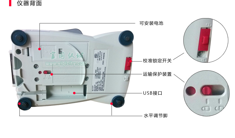 3.前置式水平調節泡-方便操作者對天平進行水平調節