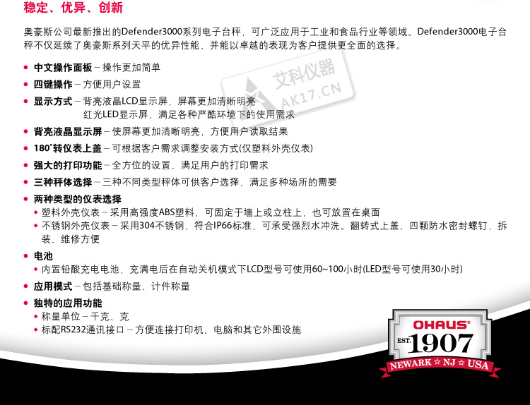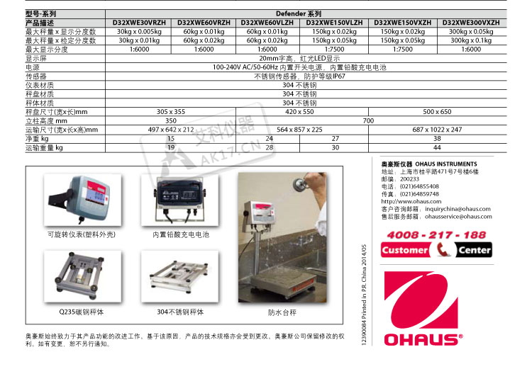 奧豪斯防水臺秤D32XWE30VRZH 電子地磅稱 電子臺秤30kg/0.005kg產品介紹