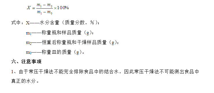 2、常壓干燥法所用設(shè)備和操作簡(jiǎn)單,但時(shí)間較長(zhǎng),不適用于膠體、高脂肪高糖食品以及含有較多在高溫中易氧化和易揮發(fā)物質(zhì)的食品。(糖果、巧克力、油脂、乳粉和脫水蔬菜類等樣品的水分測(cè)定)