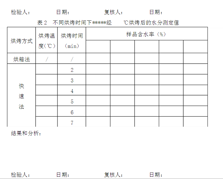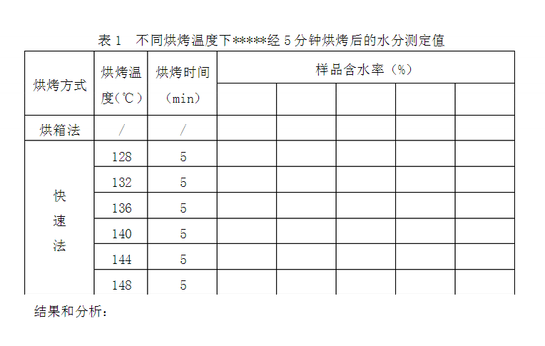 選擇5批樣品分別進行標準烘箱法水分測定以及烘烤溫度,烘烤時間下的快速水分測定儀法水分測定。兩法相比較,尋求**佳條件。 7.2.1.1**佳烘烤溫度的確定